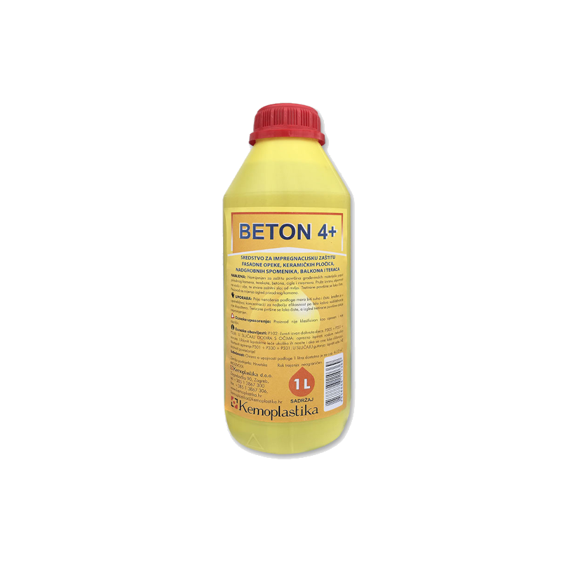 Sredstvo za impregnaciju Beton 4 je visokokvalitetna impregnacija koja štiti površine od prirodnog kamena, betona, terakote, cigle i mramora. Stvara dugotrajni zaštitni sloj koji čini tretirane površine otpornima na vodene i masne mrlje, a pritom ne mijenja njihov prirodni izgled. Transparentna formula pogodna je za unutarnju i vanjsku primjenu, dok površine nakon tretmana postaju lakše za čišćenje.